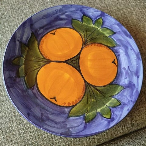 Handmålad keramikskål med fruktmotiv