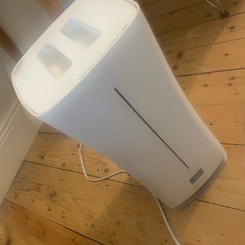Luftfuktaren Eva från Stadler Form är tyst och ger dig ett bättre inomhusklimat att leva i, särskilt på vintern. Den är kraftfull och sprider fukten högt i rummet tack vare en stark ultrasonisk motor. Detta för att förhindra att vattenångan faller ner och lägger sig på golvet, vilket annars kan hända med luftfuktare där vattenångan inte stiger tillräckligt högt.