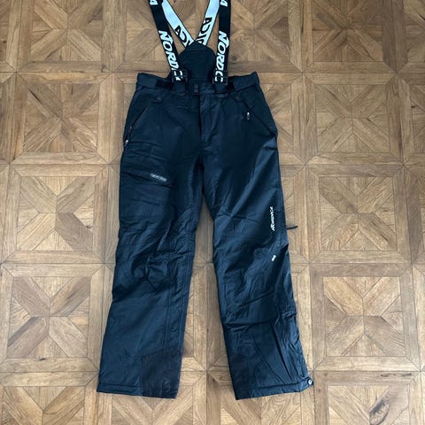 Skidbyxor i fint skick, strl.128. Svarta unisex. Utan hängslen.