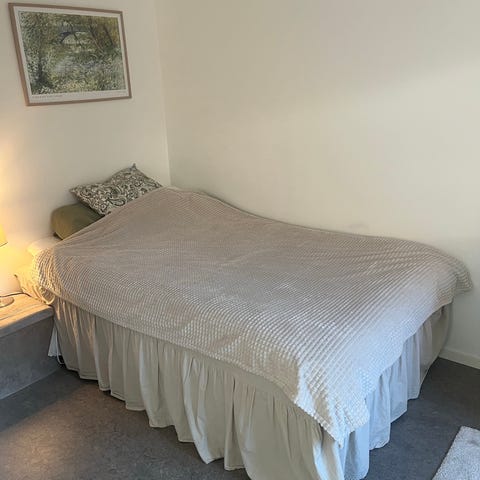 Har haft sängen i två år och den har tidigare stått i ett gästrum, bra skick och varmast använd. Madrassen är också två år gammal men köpt som ny.