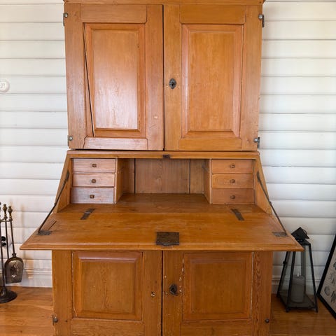 Äldre byrå/sekretär i massivt trä – charm och karaktär