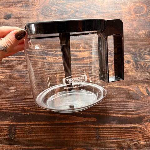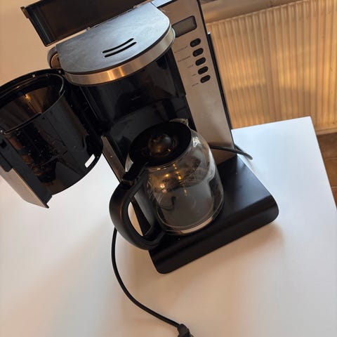 Russell Hobbs kaffepanna i glas med handtag och lock i svart plast. Används för att brygga kaffe.