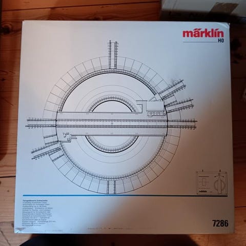 Fleischmann vändskiva skala h0. Bra skick, dammig på bilderna och vissa anslutningspunkter har lite spår av ballast Flera spåranslutningsr ingår liksom original frigolitförpackning. Saknar eventuell någon liten detalj på själva lokbryggan, se bilder för att bilda er en egen uppfattning.