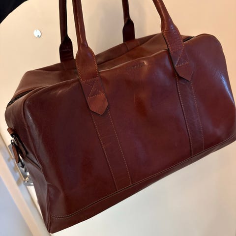 Friitala läderväska för unisex. Väskan är tillverkad i läder och har en brun färg. Den har flera fack och handtag för bärning.