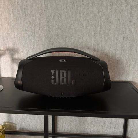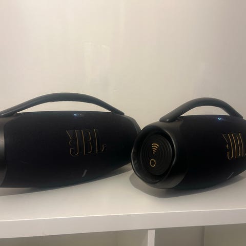 Högtalaren har endast använts inomhus och är i perfekt skick, utan några tecken på slitage. Allt originaltillbehör medföljer, inklusive kartong, plast och laddkabel.