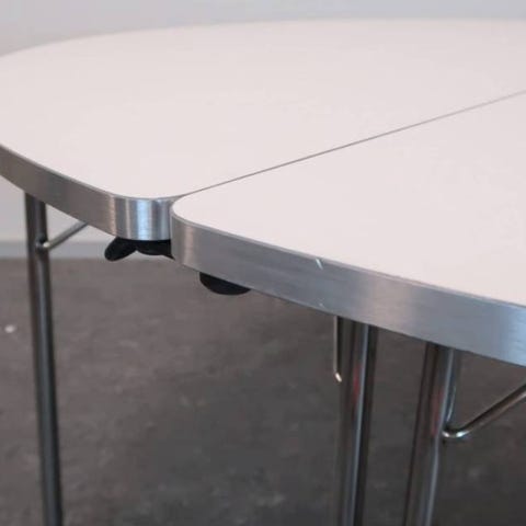 Mycket stabilt och rejält bord som tål tuffa tag. Bordet har en rund bordsskiva av laminat, vilket är både slitstarkt och lätt att torka av.