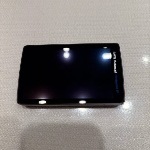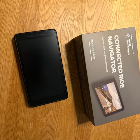 Beeline Moto GPS-navigator för motorcykel, Enheten är designad för att ge enkel och tydlig navigering för motorcyklister, med funktioner som inkluderar ruttplanering och realtidsuppdateringar. Produkten levereras med monteringsfäste, laddkabel och användarmanual.