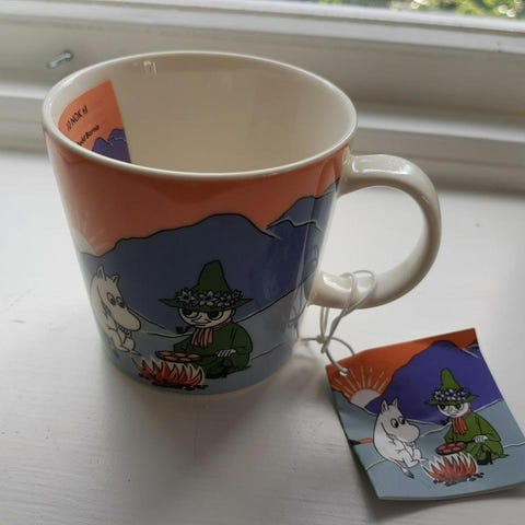 Oanvänd mugg med etikett. Felfri. Finns för avhämtning i Uppsala, kan också skickas mot fraktkostnad. Säljer fler Mumin så kika gärna på mina övriga annonser.