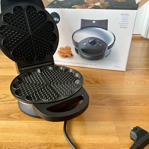 Russell Hobbs våffeljärn i svart färg. Används för att tillaga våfflor. Elektrisk med sladd. Kompakt design för enkel användning och förvaring.