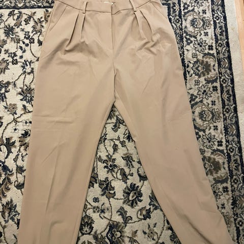 Kostymbyxor från Boohoo i storlek 38 som jag köpte tillsammans med blazern, men byxorna har aldrig använts och jag hann tyvärr inte lämna tillbaka dem. Jag beställde dem i både svart och vitt, men de passade mig tyvärr inte och har därför bara legat i garderoben.
