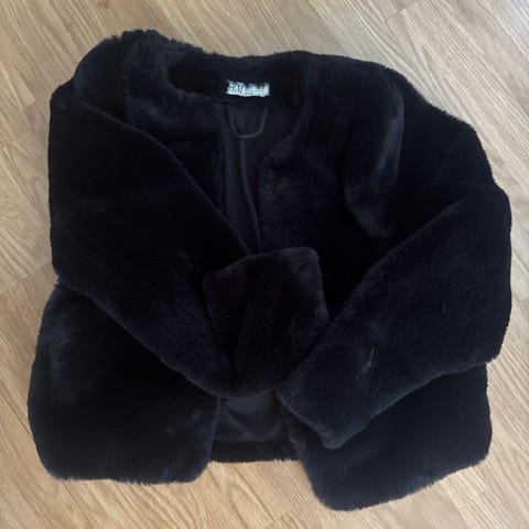 jacka vinterjacka naturvit vintage med brun fuskpälskrage