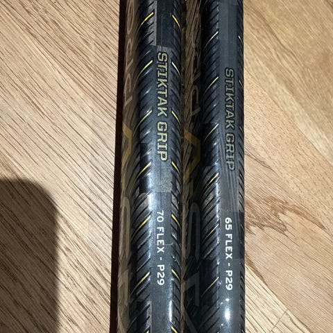 CCM Ishockeystavar med SR 70 Flex Grip och P29 specifikationer. Stavarna är avsedda för ishockey och har en flex på 70, vilket påverkar böjbarheten och spelstil. Gripytan är utformad för bättre kontroll under spel.