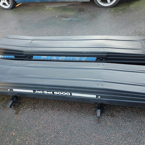 Takbox, skidbox, etc i ok till mycket bra skick. Köpes. Den skall kunna ha 5 par skidor med upp till 185 cm skidor.