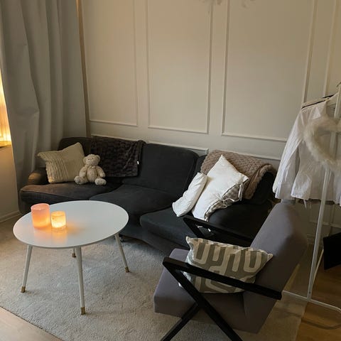 Stått i Rökfritt hem & Djurfritt hem. Soffan är inte nersutten. Inga skador! Fina ben & skönare kuddar.