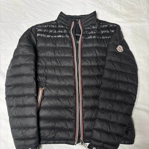 Moncler dunjacka i svart färg, storlek S. Jackan är tillverkad av dunmaterial och är avsedd för män. Passar som ytterplagg vid kallt väder.