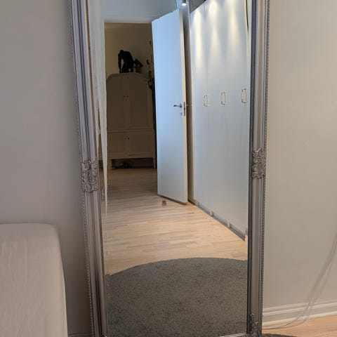 Snygg golvspegel i jättefint skick! Passar i flera utrymmen. Köpt på Ellos, Jysk eller Ikea och står just nu bara i en garderob, då den inte passar hur vi bor just nu.