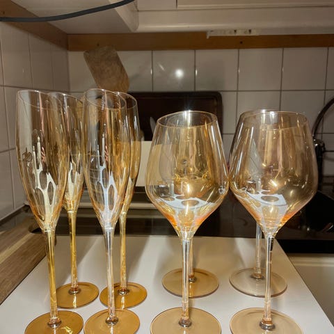 IKEA champagneglas i rosa glas.