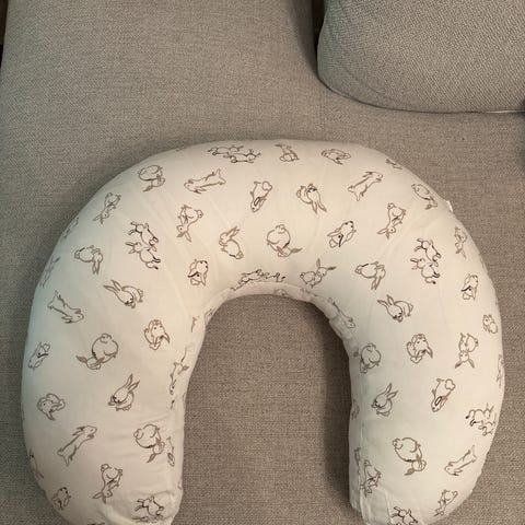 Len amningskudde från IKEA, använd endast ett par gånger. Mycket bekväm och ger bra stöd vid både amning och flaskmatning. Överdraget är avtagbart och tvättbart.