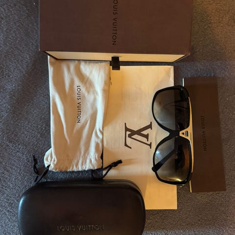 Louis Vuitton Blade Square Solglasögon, modell Z1615W. Dessa levereras med original LV-dustbag och ett marinblått förvaringsetui! De har sköldpaddsfärgade bågar med bruna linser. Metalldetaljerna är i guld. logodetaljer över hela designen samt LV-initialer på gångjärnen. Ljustransmissionen är 29 %, UV-skyddet är 100 % och filterkategori 2. Solglasögonen är i NYSKICK utan några noterade defekter på bågar, linser eller tillbehör!