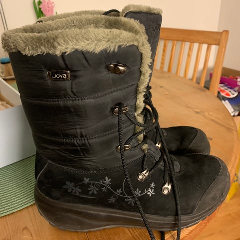 Köpte ett par vinterskor av märket Axelda i början av december 2025 men efter några gångers användning måste jag inse att de är för små för mig. De är en vattentät vinterkänga med utfällbara dubbar vilket är smidigt vid halt underlag.