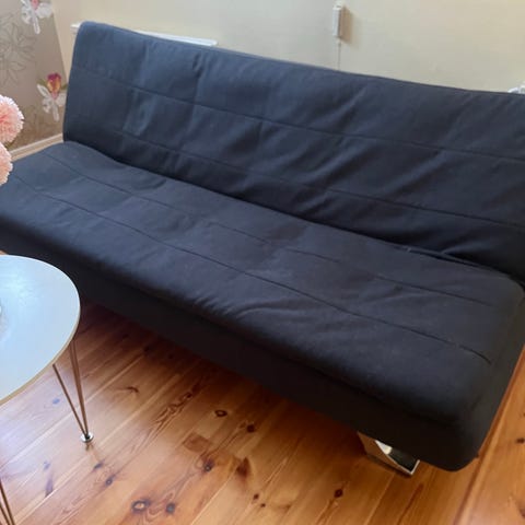 Bäddmått 195 x 140. Tyg liknande jeanstyg. Har ibland använts som gästbädd.