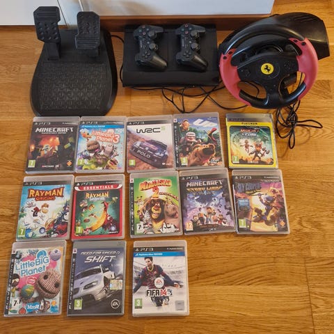 Playstation 3 med 7 spel och ratt