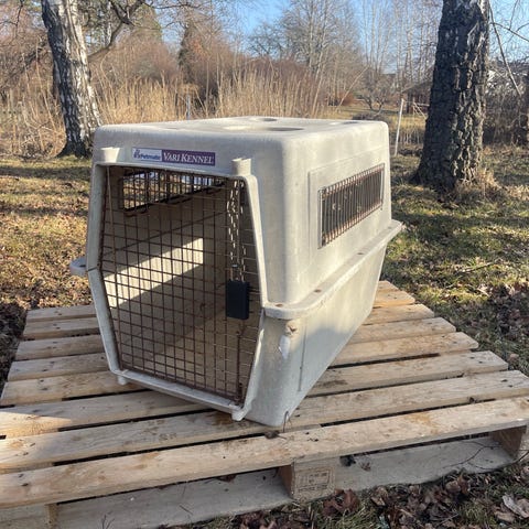 Tänk på att denna buren inte är avsedd att bära hunden i utan är perfekt för utställning eller andra tillfällen när hunden behöver ett tillfälligt boende för lugn och ro.
