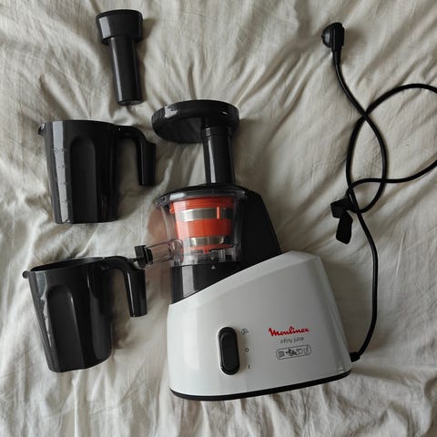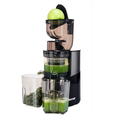 En kraftfull juicer, klarar av att juicea hela äpplen, morötter, ingefära, grönkål mm.
