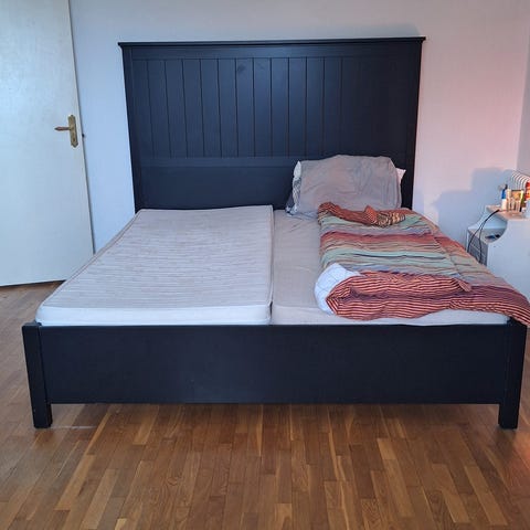 BRIMNES 180x200 sängstomme + ribbor. Använd ca. ett år.