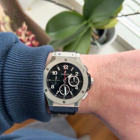 Hublot Big Bang herrklocka med en boett i roséguld och svart urtavla. Klockan har en diameter på 44 mm.