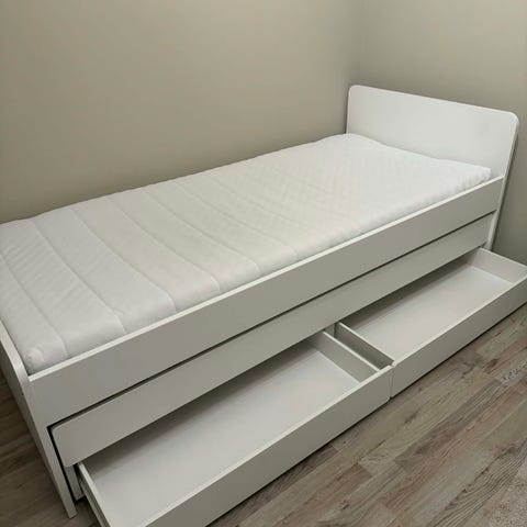 Flekke dagbädd med utdragslådor och utdragbar extrasäng. Finns fortfarande att köpa på IKEA för 3895 kr.