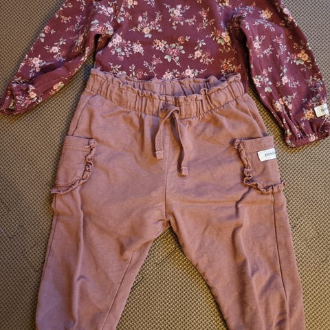 1 blommig body, 1 vit body samt mörklila byxor alla i storlek 56. Från rök- och djurfritt hem, endast tvättade i parfymfritt tvättmedel.