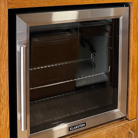 Sparsamt använd minikyl med plats för 6-8 vinflaskor, och med uttagbara hyllor om man vill sätta in annat.
