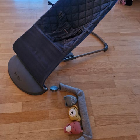 BabyBjörn Babysitter Bouncer i brun färg. Babysittern är avsedd för spädbarn och erbjuder en bekväm och säker sittplats. Tillverkad av mjukt och hållbart material som är lätt att rengöra. Aktivitetsbåge i fint skick ingår.