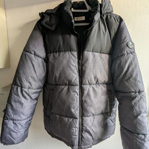 H&M vinterjacka i storlek 146, unisex. Jackan är blå och tillverkad i polyester med fleecefoder i ryggen.