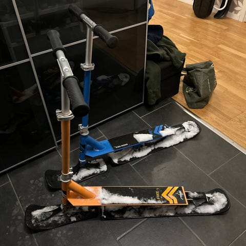 2 st oanvända Snow Kick i perfekt skick, perfekt för lek och transport på snö och is. Stabil konstruktion med två skidor och halkskydd för bra grepp. Rolig för både barn och vuxna, enkel att använda och smidig att ta med.