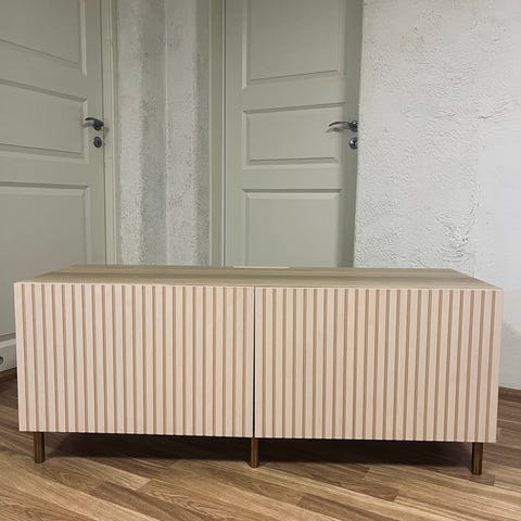 Tv bänk i serien bestå från ikea, färgen valnöt/mörk ek med vita döttrar, utgången färg från IKEA.