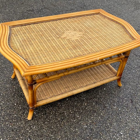 Utebord i rotting till soffgrupp. 60x105cm. 44cm högt. Glasskiva saknas.