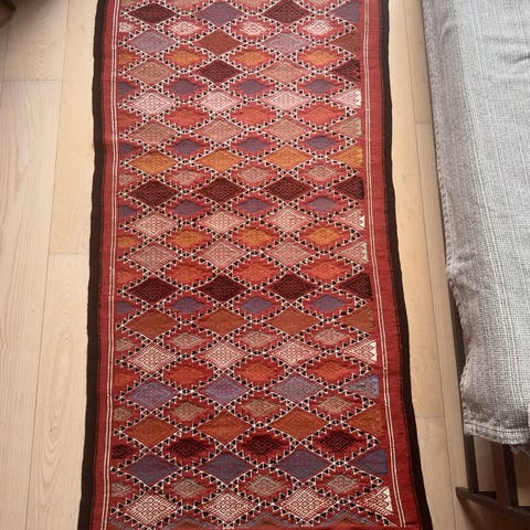 Handvävd Kelim-matta som mäter cirka 60x80cm. Djur- och rökfritt hem.