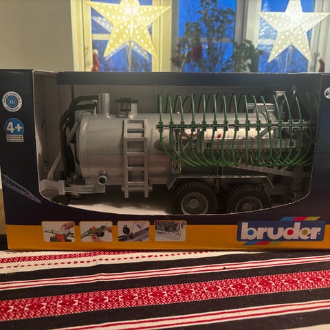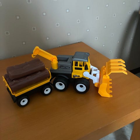 Traktor med balvagn och åtta balar i bra men använt skick. Finns lite repor och märken men inget som påverkar användbarheten.