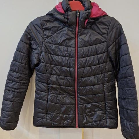 Svart slimmad täckjacka med luva stl 146 från decathlon.