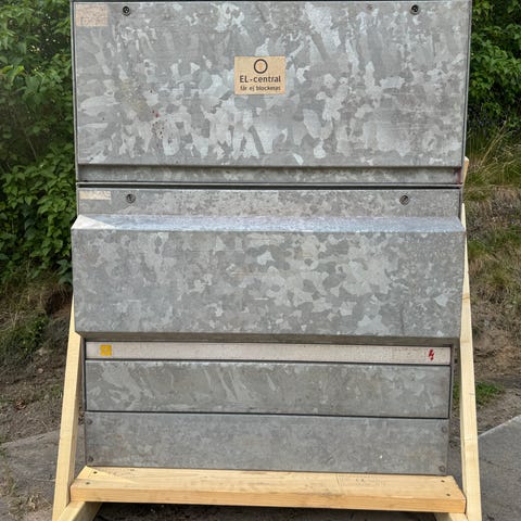 Säljer en GARO EL-FLEX byggcentral/elcentral, modell ZSF25, på stativ. Passar för tillfällig el på byggarbetsplats, vid renovering, i verkstad eller för event. Inkommande kabel och flera uttag/säkringar enligt bilder.