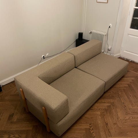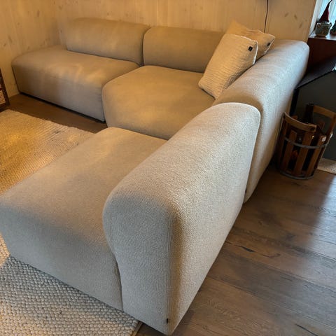 Danish designer 'Says Who' Angle modular soffa. 3 pieces 250cm x 250cm. Very good condition, with original receipt. Purchased in 2020 for 28000kr. Selling as we are moving to Australia and cannot take it with us!