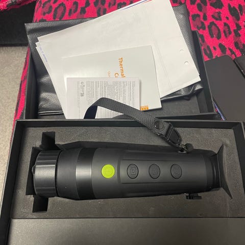 Seek Thermal RevealXR30 termisk kamera med snabb bildfrekvens. Enhetens design är kompakt och bärbar, lämpad för användning i olika miljöer för att upptäcka värmesignaturer. Enheten har en tydlig skärm för visning av termiska bilder.