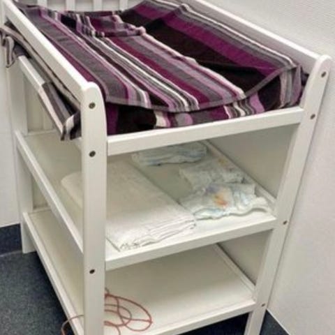 Jollyroom skötbord i trä med vit färg. Mått: höjd 87 cm, längd 68,5 cm, bredd 56 cm. Liggyta 64 x 52,5 cm. Maxvikt 11 kg.