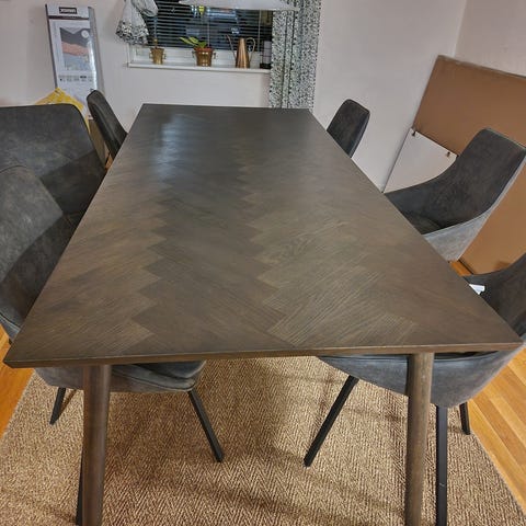 Matsalsbord med 6 stolar i massiv ek