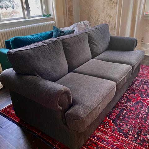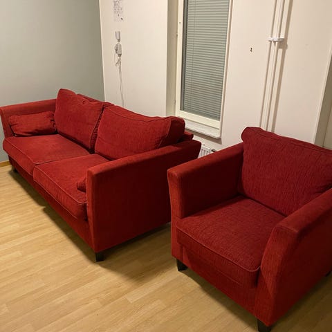 HÖRNSOFFA STOR , DELBAR ,FÄRG djup röd ,SE BILD ,MEN mörkare och BÄTTRE I VERKLIGHET. SNYGG DESIGN FRÅSCH ,SNYGG DESIGN