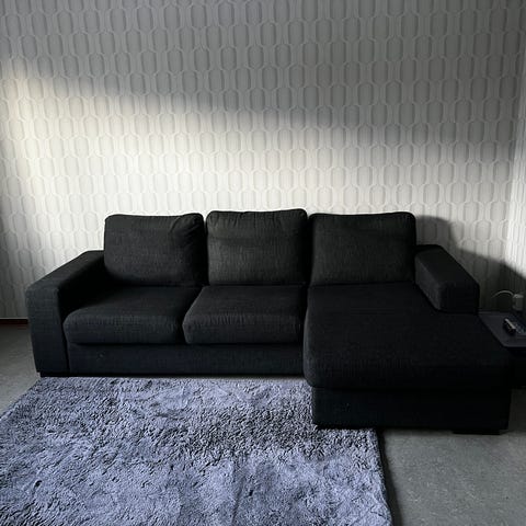 Superfin svart divansoffa. Inga revor eller sprickor. Väl omhändertagen. Djur och rökfritt hem.