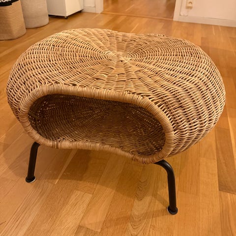En fotpall i rotting med förvaring. Hämtas på Ekerö.