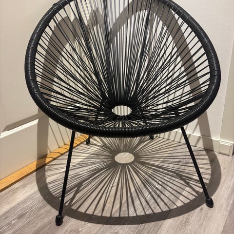 Loungestol av FSC-certifierad såpad ek med sits av flätade band av jute. Sitsen har en förstärkning, ett extra tyg under de flätade banden.
